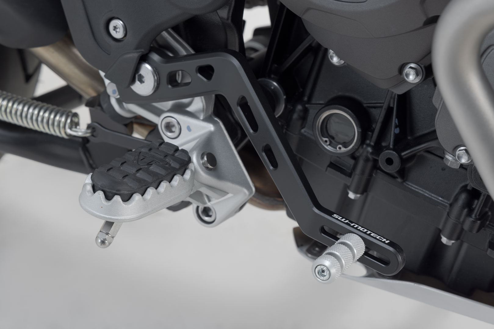The adjustable brake pedal made of high-quality milled aluminum with HART-COAT® finish allows for optimized handling and control of the brake. The length of the SW-MOTECH brake pedal can be adjusted by 5 cm, so it suits every foot and every driving style. The tread pattern increases grip and provides improved stability for sporty driving and longer tours. With the Adventure tread (sold separately) you can improve brake pedal handling, especially during offroad driving while standing.