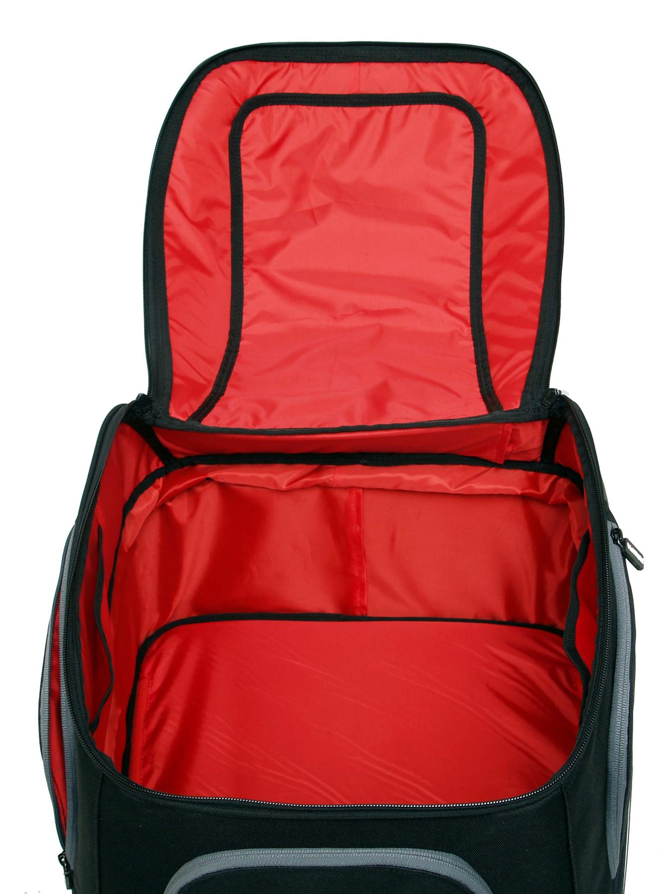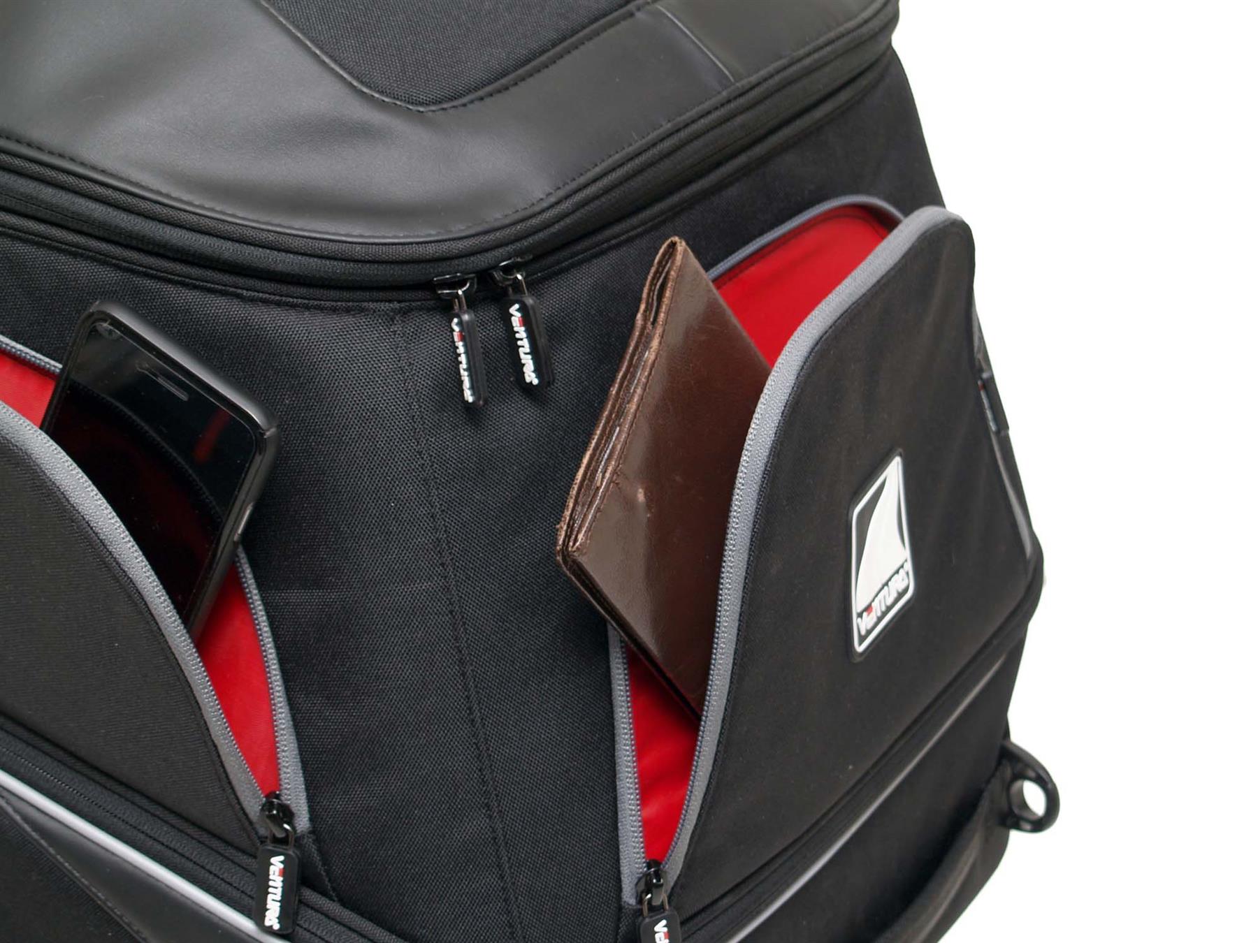 - Red internal lining making it easy to find small items.