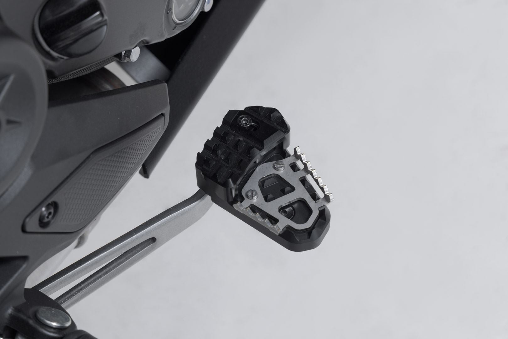 SW-MOTECH has manufactured this extension for brake pedal from milled aluminum to fit the original Kawasaki Versys 650 brake pedal.