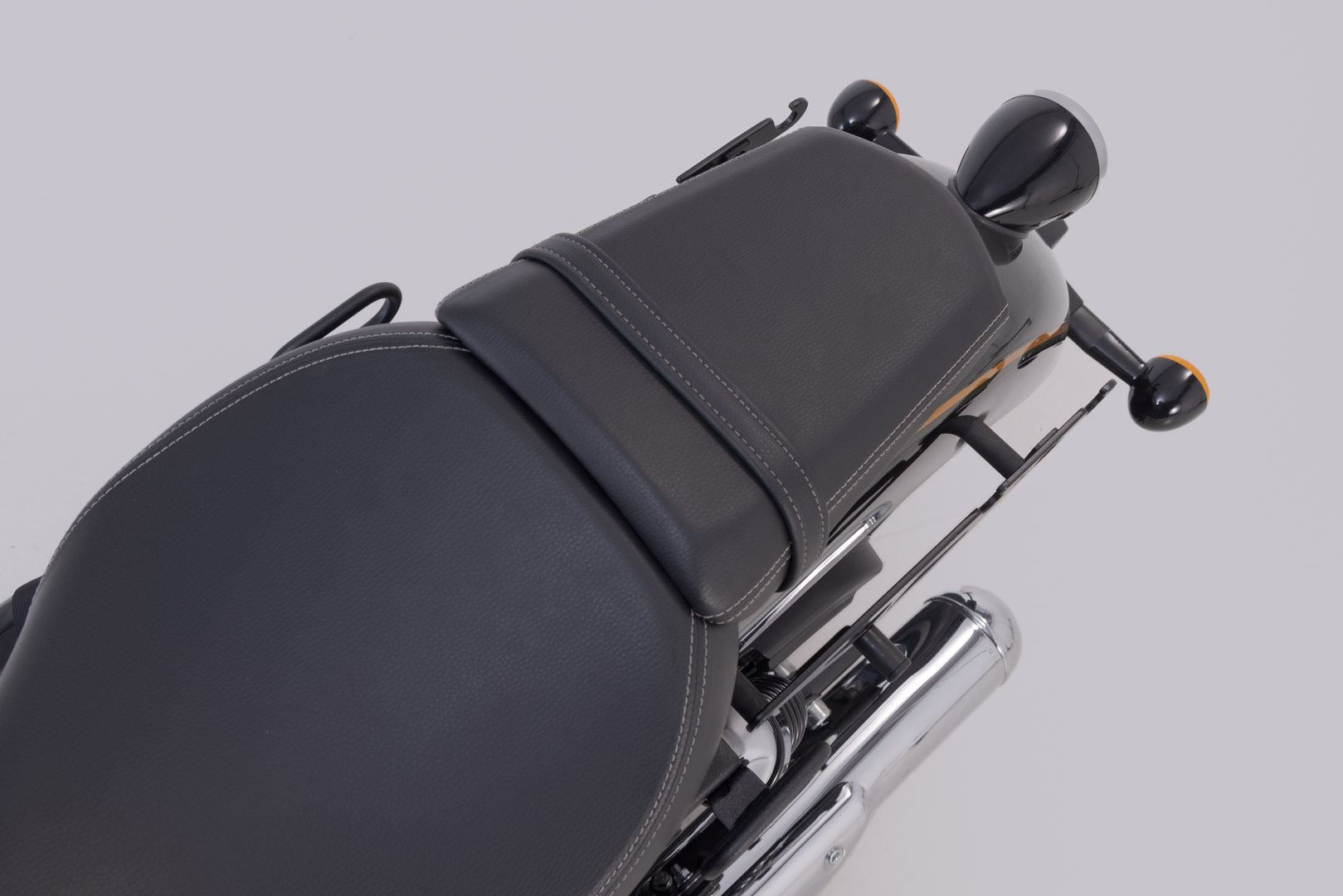 The bike-specific bag carrier can be easily and quickly mounted on to original attachment points on the fender strut. The quick lock system allows LH Legend Gear side bags to be attached and removed in just a few easy hand movements, without the driver foregoing reliable bag fastening.